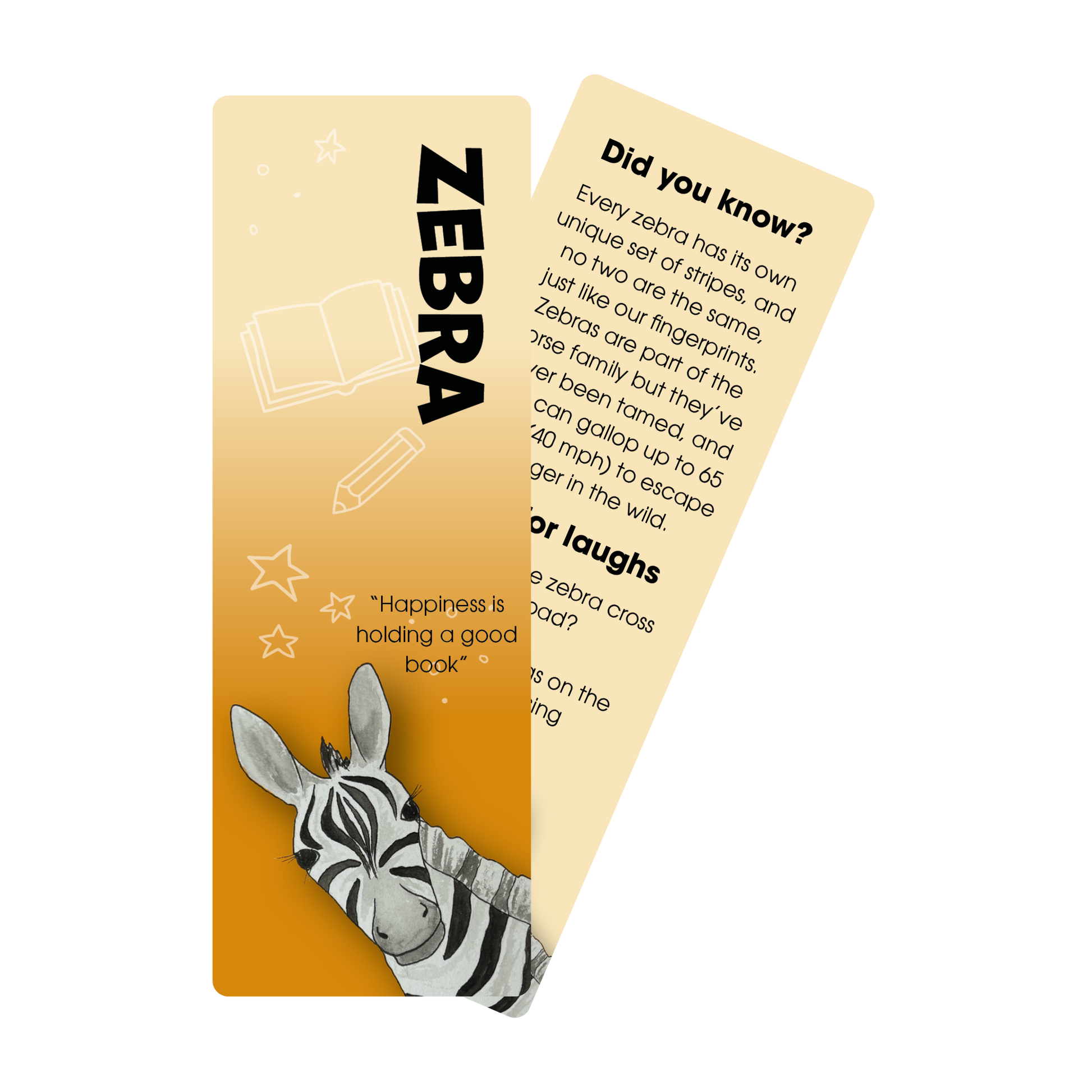 Featuring an original watercolour design on both sides, this bookmark is printed on premium card with a smooth, soft-touch matt finish for lasting durability. On the reverse, you’ll find a fun fact and a cheerful joke to make young readers smile with every chapter.